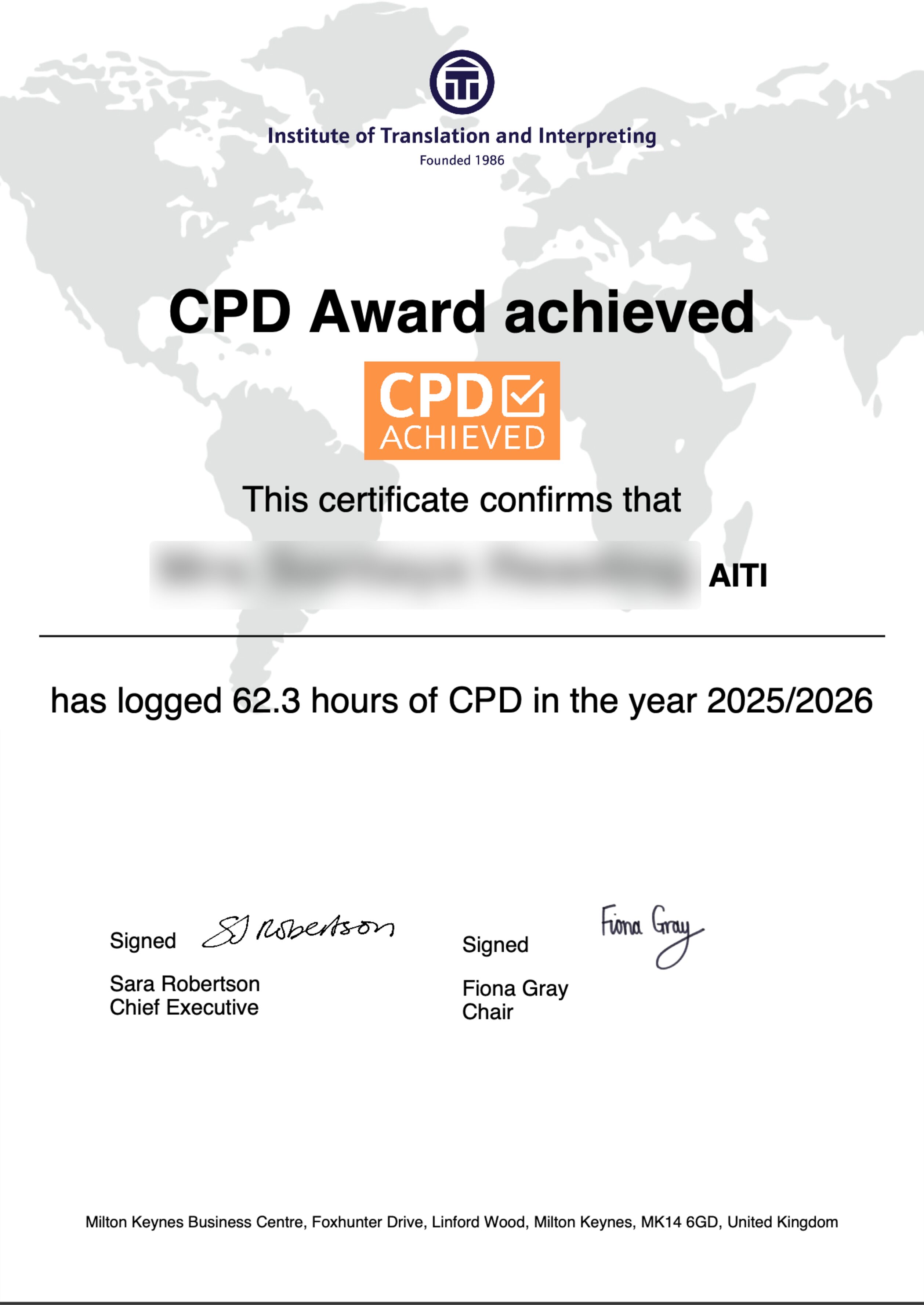 Institute of Translation and Interpreting : Certificate of MembershipCPDInstitute of Translation and Interpreting : Certificate of Membership